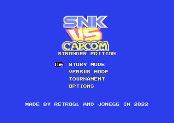 SNK vs CAPCOM for C64/C128 - Stronger Edition is a non-profit, freeware and unlicensed game created by fans and based on the original Neo Geo Pocket Color game called “SNK vs CAPCOM: Match of the Millennium”.